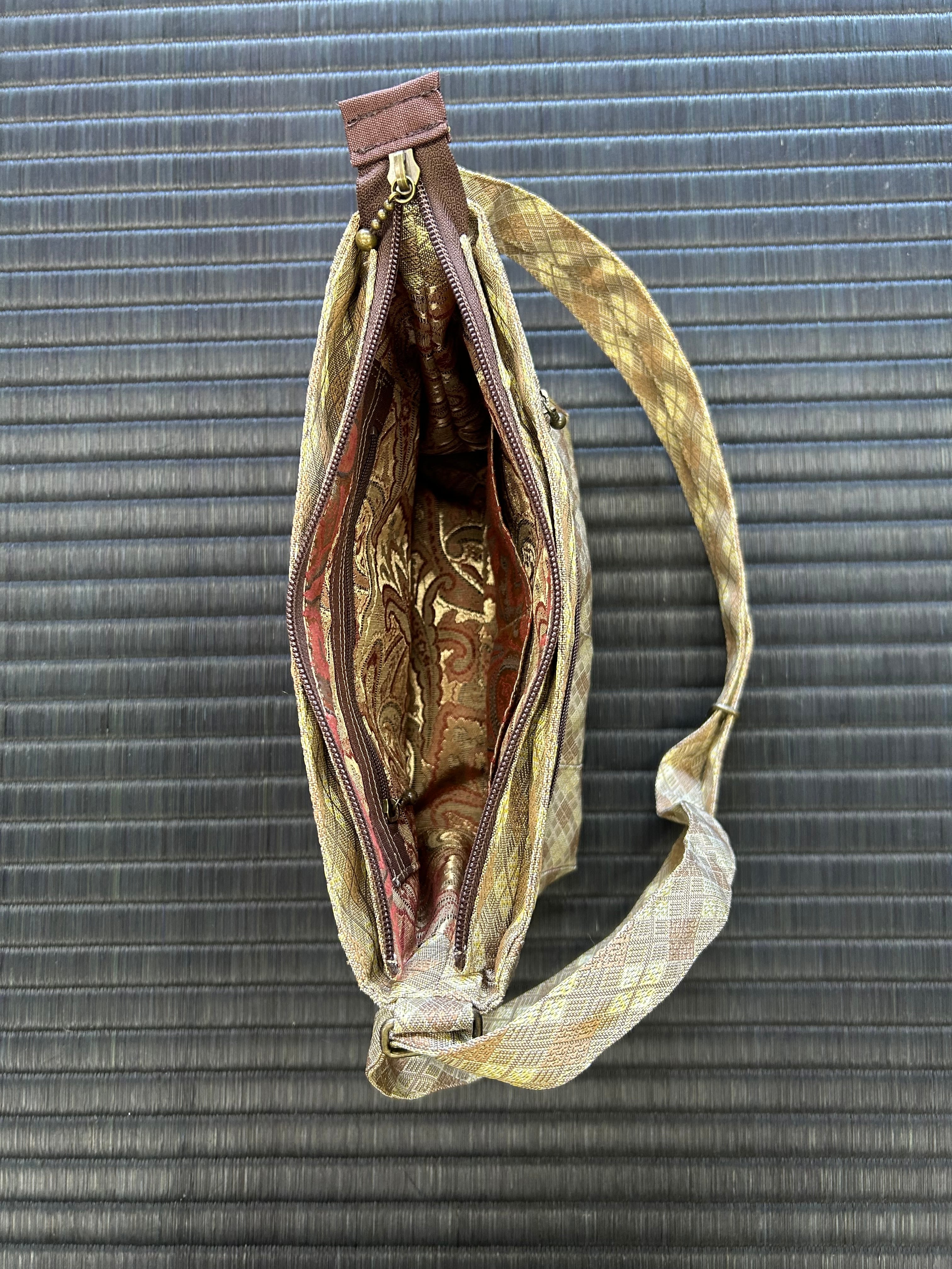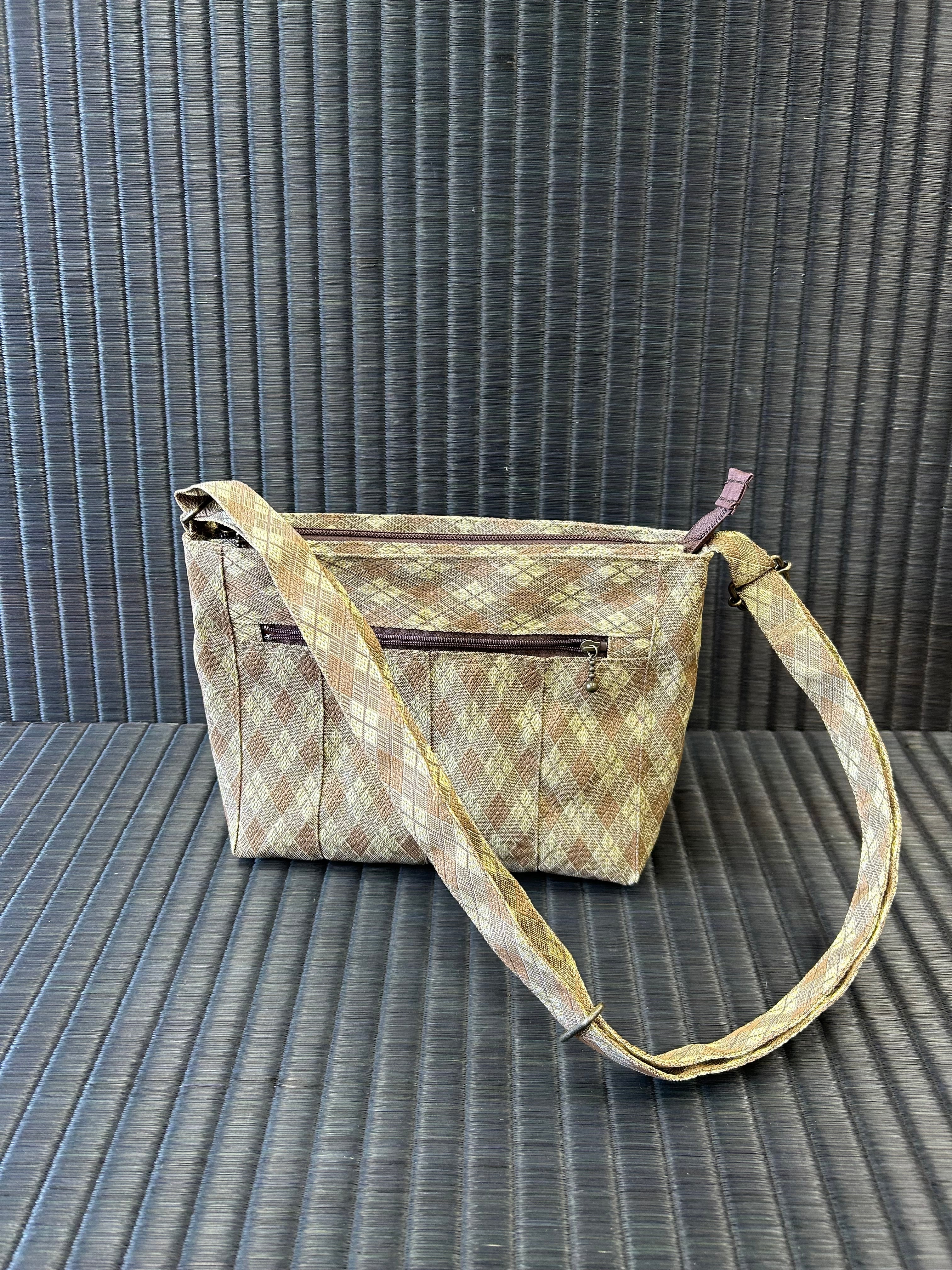 茶色い菱形が伝統的な畳へりのショルダーバッグ
